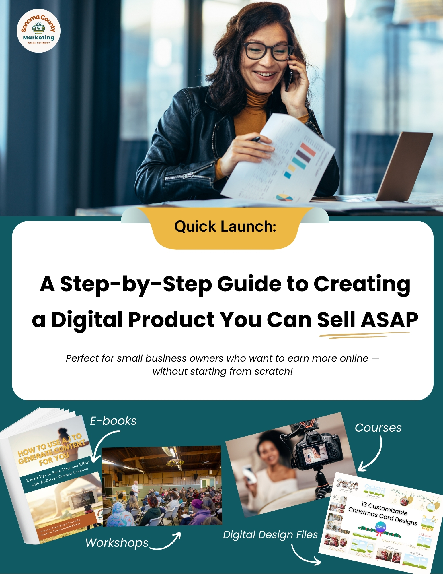 I’m Maria—marketing strategist and founder of Sonoma County Marketing. For 10 years and counting, I've helped small businesses earn more through tride and true marketing systems and content creation. In 2025, I'm teaching business owners to work smarter (not harder) by turning their know-how into digital products and evergreen systems (using AI). My approach is practical, ethical, and designed for real life (kids, clients, and everything in between). I’ve worked behind the scenes with farms, wellness brands, nonprofits, family-owned shops, and service providers across Sonoma County and beyond — helping them clarify their offers and build systems that scale.